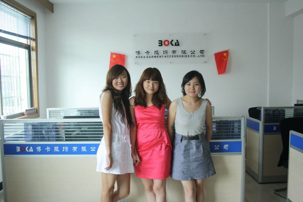 Three young people who had graduated from university for four years got together when the trend of international trade swept through China. Among them, one was a business English graduate, one was a sales director of some company, and the other had been doing agency sourcing business for a client. Their common idea led them to quickly form a small company since they all wanted to start their own business. With the supply advantage of Yiwu local small commodity market, they gathered in an office of less than 100 square feet and officially started the business of garment accessories trading and exporting by relying on the very old global resource platform. That was our predecessor -Boka Garment Accessories Co., Ltd.