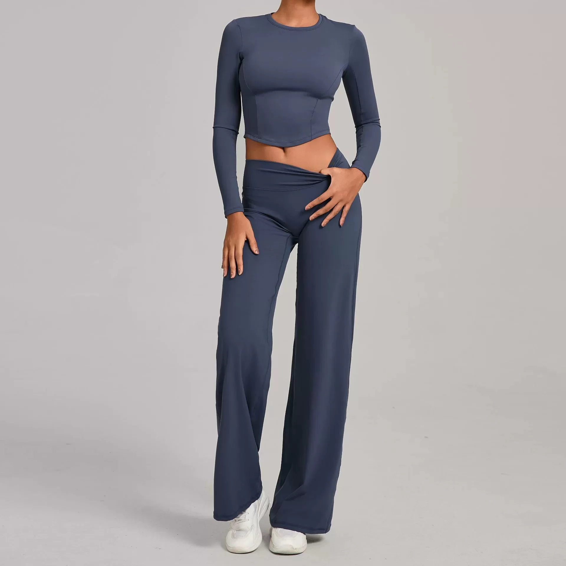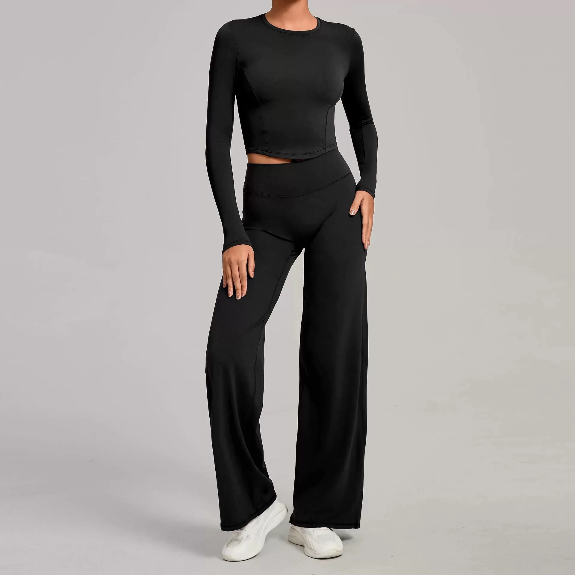 Made with quick-dry, moisture-wicking material, it keeps you dry and comfortable during workouts while providing warmth and flexibility for cooler seasons. Ideal for yoga, gym workouts, fitness training, running, and casual athleisure wear, this set balances performance and everyday versatility. Perfect for wholesale supply, bulk orders, and private label activewear brands, it??s a must-have for modern fitness and lifestyle collections.