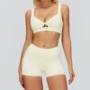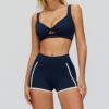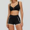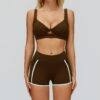 This wholesale bare feel yoga set is designed for cross-border activewear markets, combining modern contrast styling with premium comfort. Made from ultra-soft bare-feel fabric, it offers a smooth, second-skin wearing experience with excellent elasticity and breathability. The contrast color design adds a bold, sporty look, while the hollow-out open-back detail highlights the back and enhances ventilation.