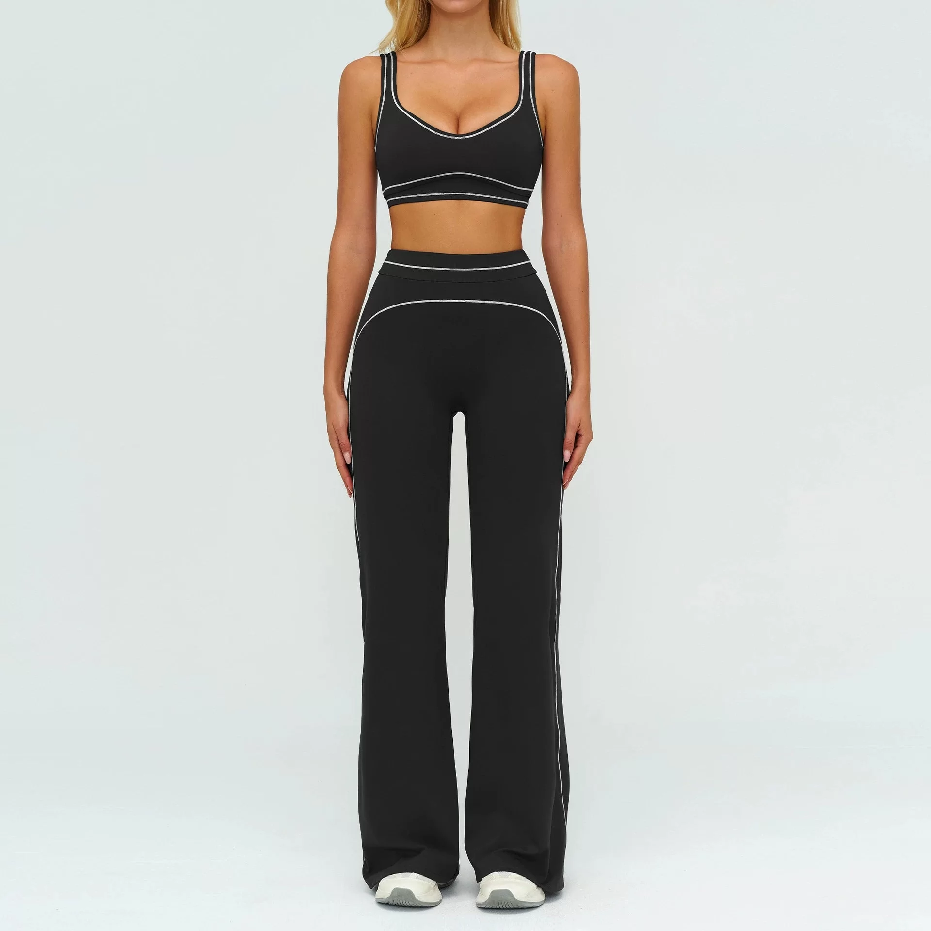 Designed for running, workout training, yoga, fitness sessions, and outdoor exercise, this set delivers both performance and fashion. The slim, body-shaping fit moves naturally with the body, making it ideal for wholesale supply, bulk orders, and private label sportswear brands looking to offer premium-feel active sets.