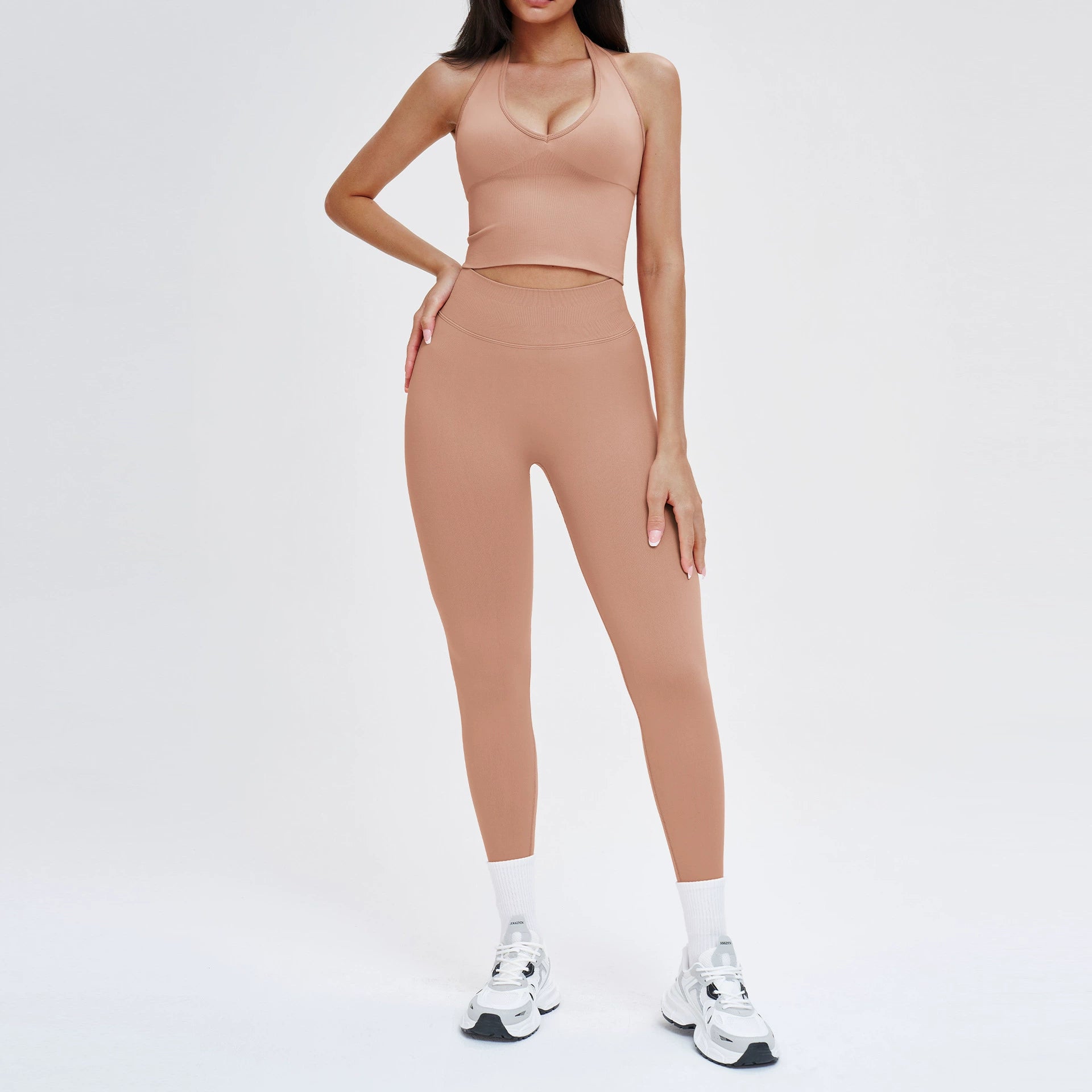 Made from soft, breathable, and high-stretch fabric, this set is perfect for yoga, running, gym workouts, fitness training, and outdoor exercise. Its versatile design makes it suitable for both athletic performance and casual athleisure. Ideal for wholesale supply, bulk orders, and private label activewear brands, this seamless set is a staple for modern women??s fitness collections.