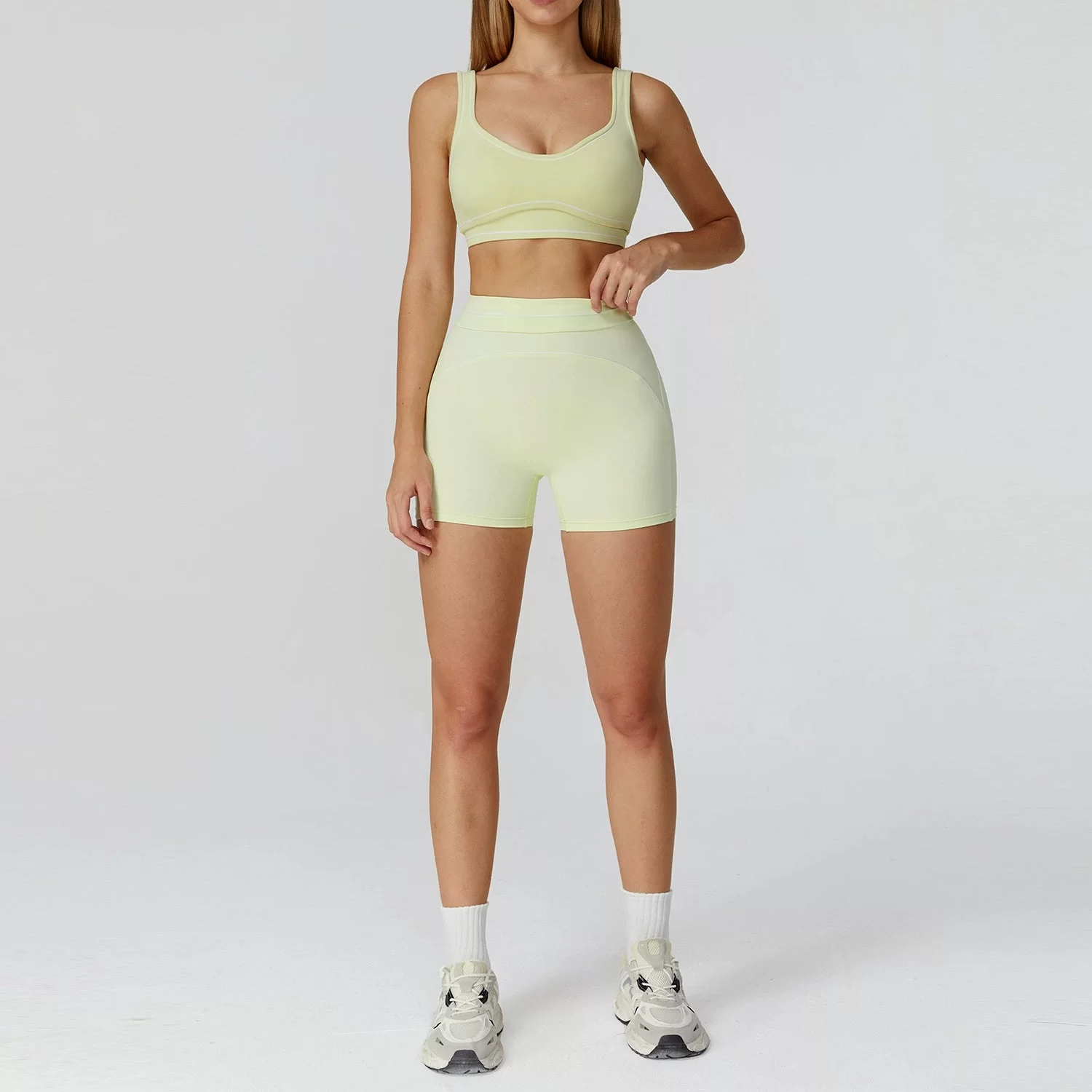 Designed for running, workout training, yoga, fitness sessions, and outdoor exercise, this set delivers both performance and fashion. The slim, body-shaping fit moves naturally with the body, making it ideal for wholesale supply, bulk orders, and private label sportswear brands looking to offer premium-feel active sets.