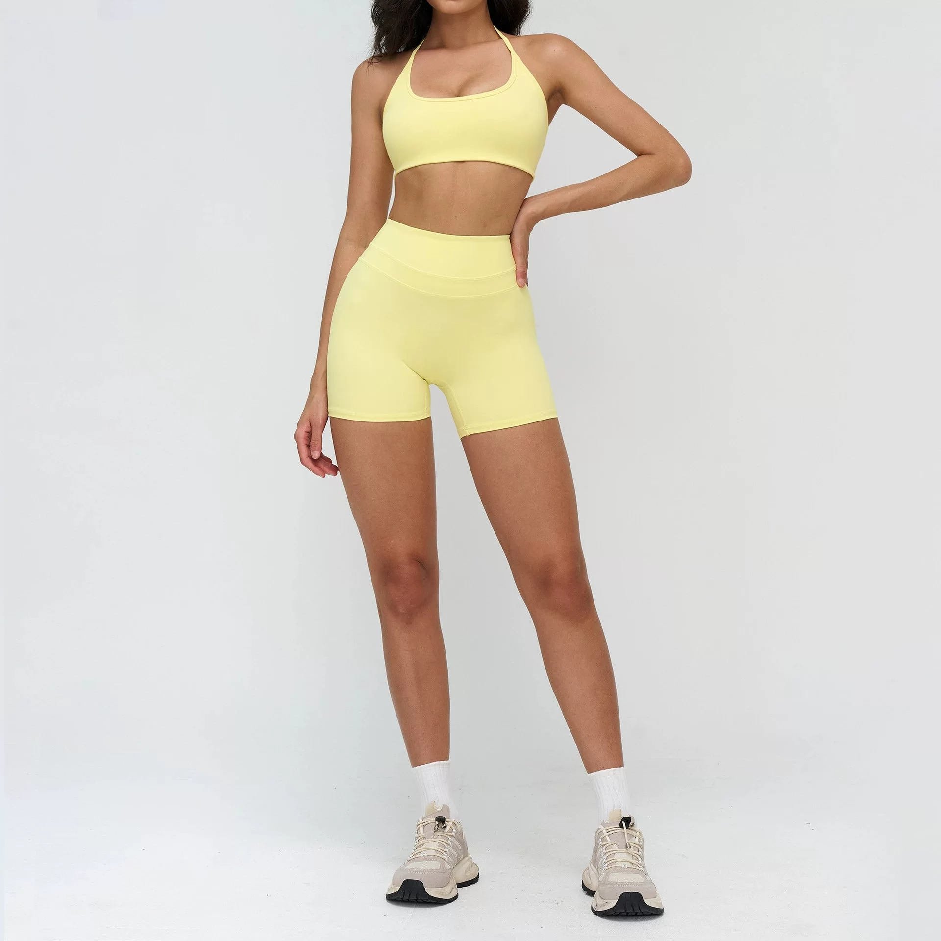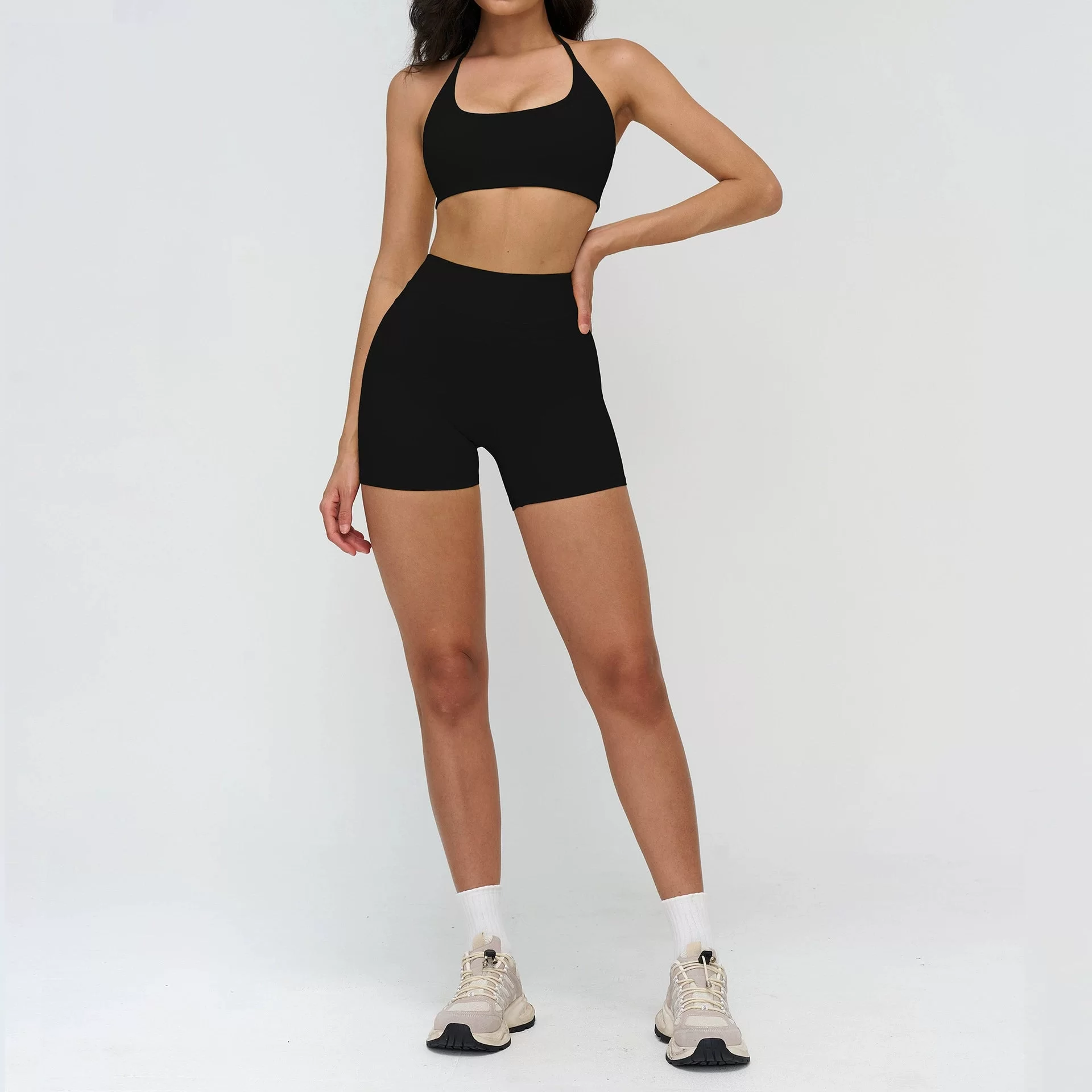 This wholesale brushed yoga set is designed for women��s cross-border activewear markets, combining warmth, performance, and a sleek, body-contouring fit. Made from soft brushed fabric, it offers a cozy, skin-friendly feel with excellent stretch for comfortable movement. The hollow open-back design adds breathability while creating a modern, stylish athletic look.