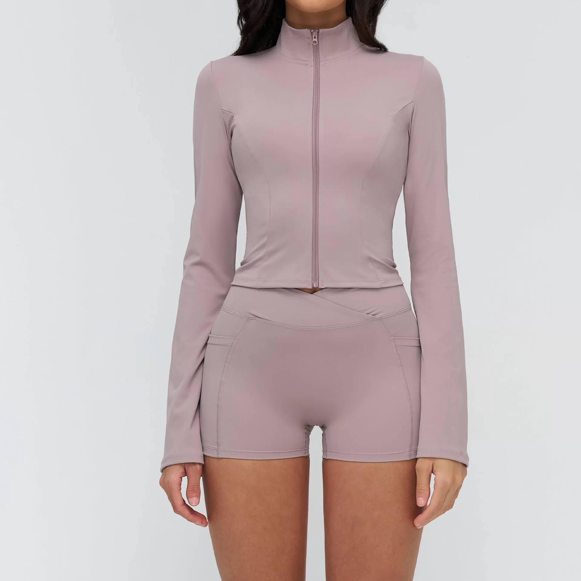 This wholesale zip neck yoga top is designed for European and American cross-border markets, blending minimalist style with athletic performance. Made from soft, bare-feel fabric, it delivers a smooth, second-skin wearing experience with excellent stretch and breathability. The stand collar with zipper design provides adjustable coverage and a clean, modern look.