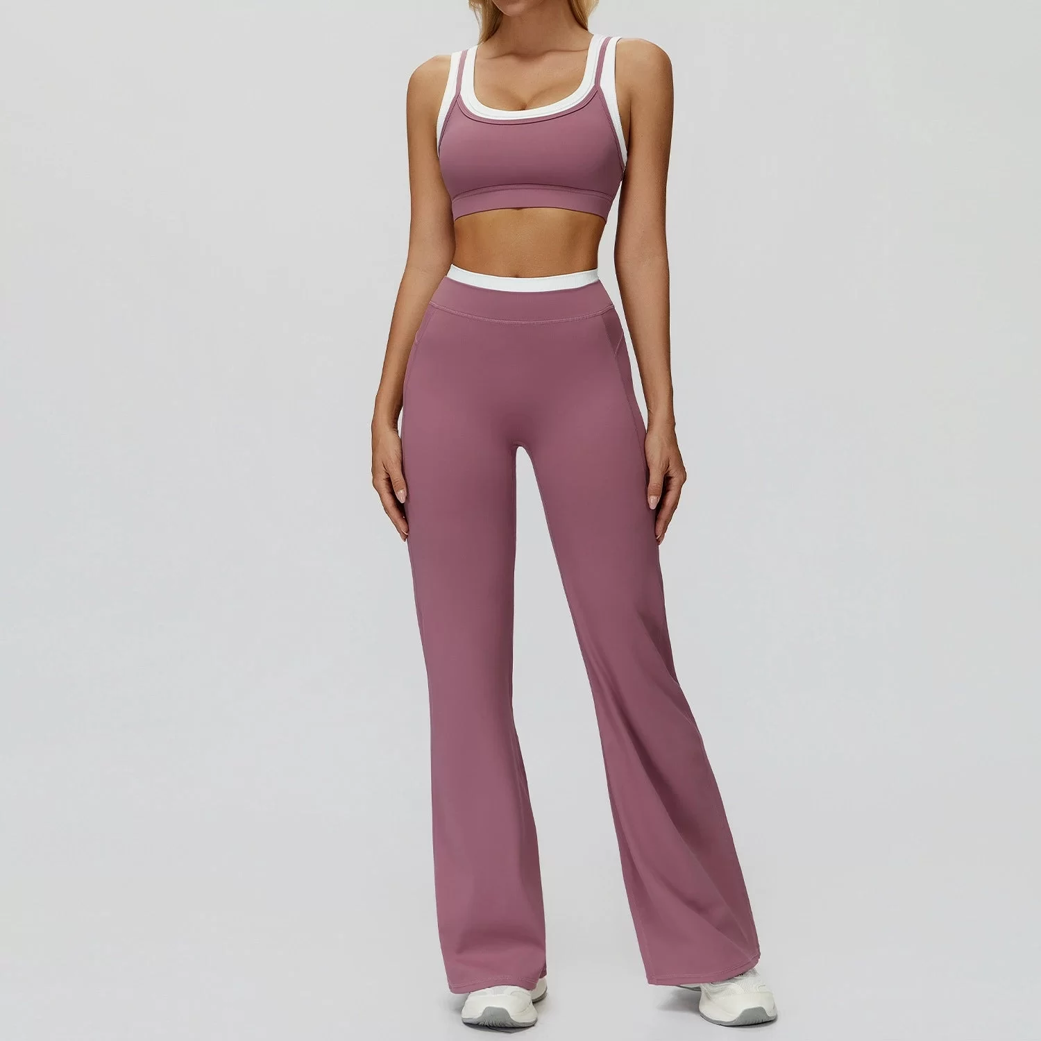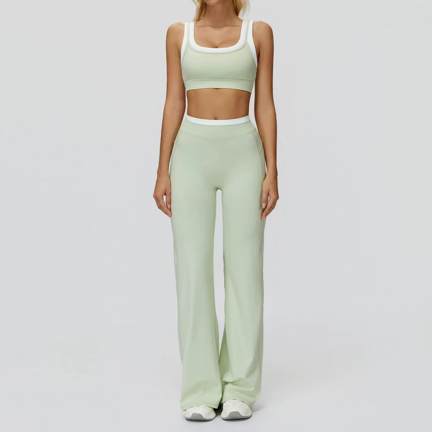 Wholesale Ribbed Yoga Bra With Wide-leg Pants Set