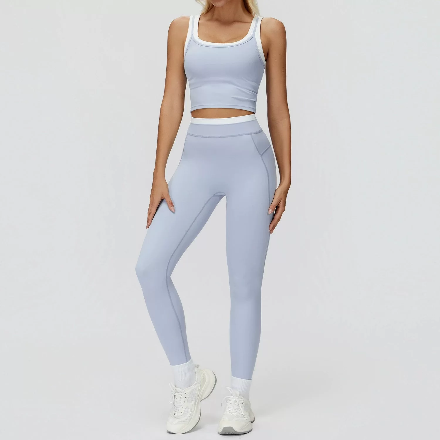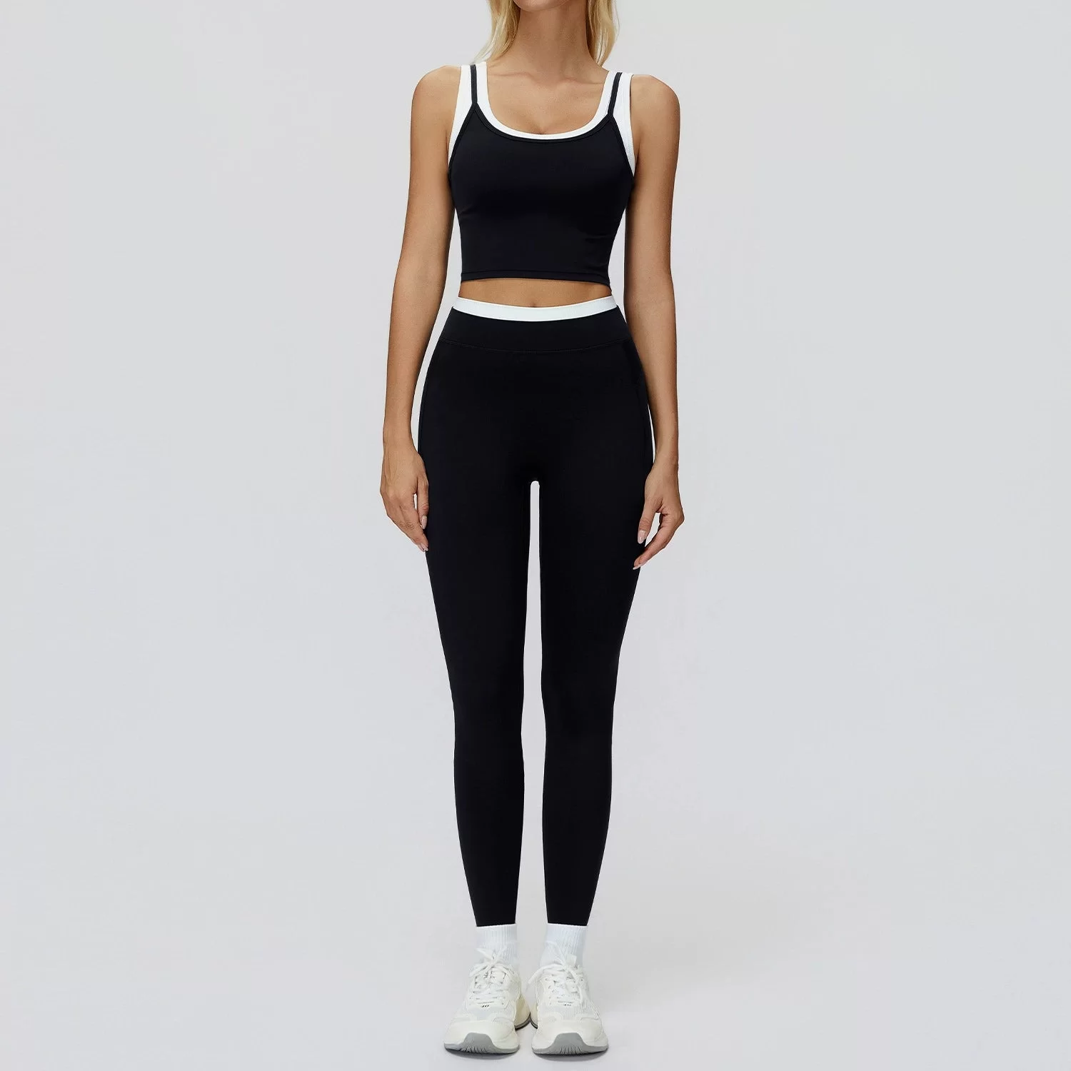 This wholesale ribbed yoga set features a sports bra and shorts combination, designed for cross-border activewear markets with a focus on style, comfort, and performance. Crafted from premium bare-feel ribbed fabric, it delivers a soft, smooth, second-skin feel with excellent elasticity and breathability. The contrast color design adds a fashionable, sporty edge suitable for both workouts and casual wear.