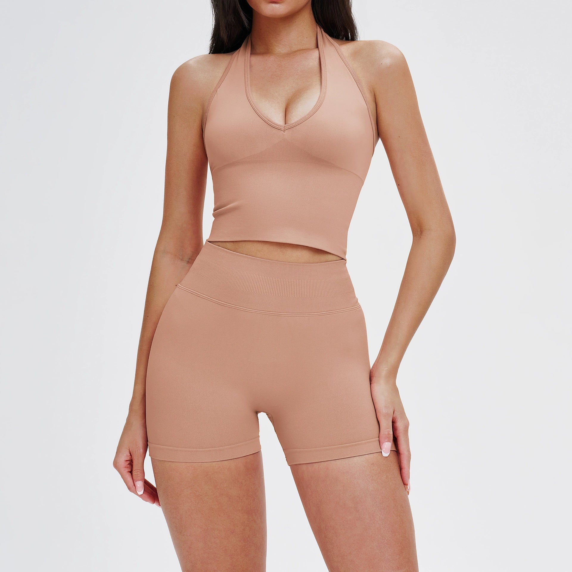 Made from soft, breathable, and high-stretch fabric, this set is perfect for yoga, running, gym workouts, fitness training, and outdoor exercise. Its versatile design makes it suitable for both athletic performance and casual athleisure. Ideal for wholesale supply, bulk orders, and private label activewear brands, this seamless set is a staple for modern women??s fitness collections.