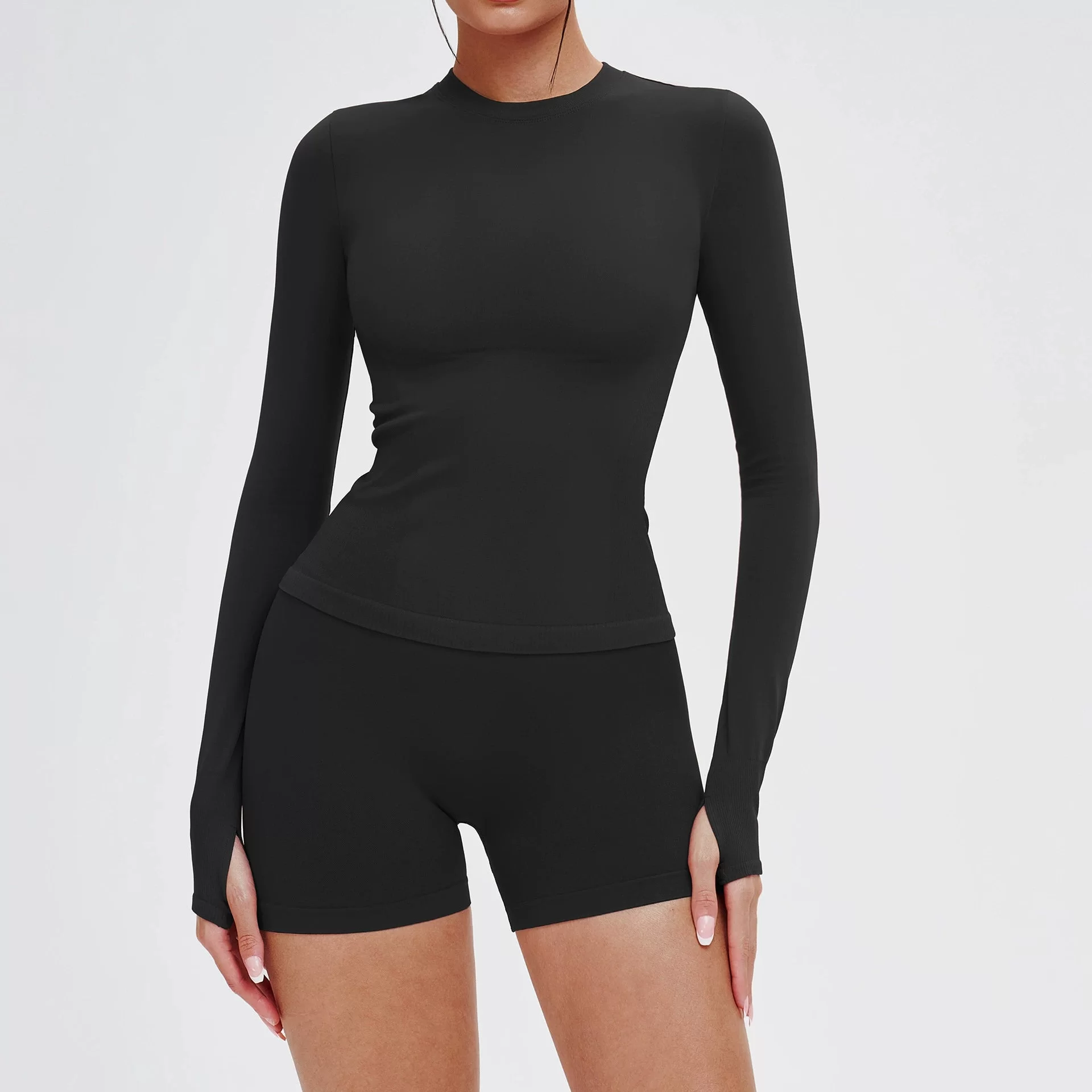 This wholesale seamless yoga set is designed for cross-border women??s activewear markets, offering a smooth, body-hugging fit with premium comfort. Featuring a classic round-neck design, it provides a comfortable, non-restrictive fit ideal for all-day wear. The seamless construction minimizes friction and enhances flexibility for unrestricted movement.